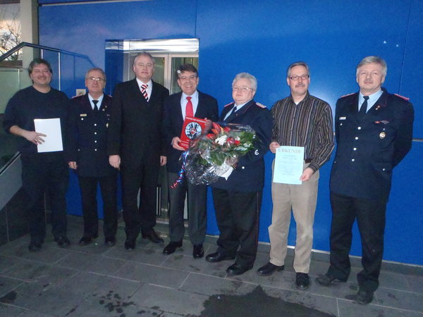 In einer kleinen Feierstunde in den Räumen der Firma CG Chemikalien überreichtenStadtbrandmeister Hartmut Hoffmann und Bürgermeister Thomas Prinz kürzlich die Förderplakette „Partner der Feuerwehr“ des Landesfeuerwehrverbandes Niedersachsen e. V. an Geschäftsführer Uwe Klass und seinen Werksleiter in Laatzen, Michael Schäfer. Innerhalb des Laatzener Stadtgebietes ist die Firma CG der dritte Betrieb, der diese hohe Auszeichnung erhält. Geschäftsführer Uwe Klass bedankte sich bei Bürgermeister und Feuerwehrführung für die Auszeichnung: „Ich habe mich sehr darüber gefreut, außerdem hat uns jede Übung und jeder Einsatz hier vor Ort näher mit der Feuerwehr Laatzen zusammen gebracht“.