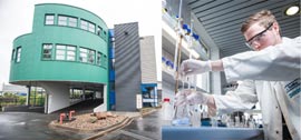 Das neue Betriebsgebäude mit Labor, Büroräumen, Sozialräumen und Tiefgarage wird eingeweiht.